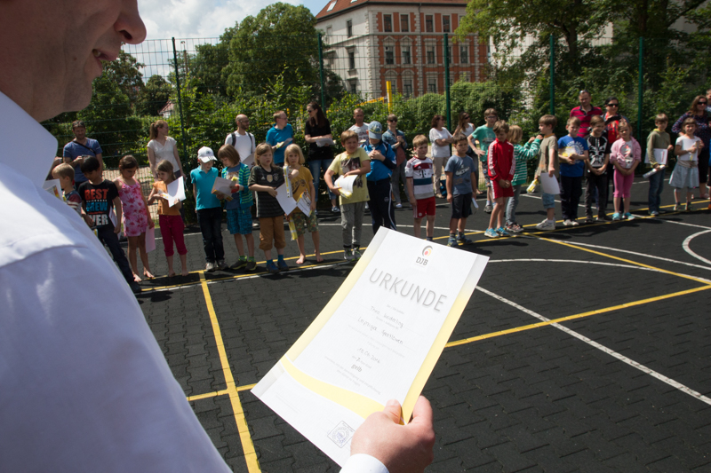 Es ist bereits eine Tradition bei den Leipziger Sportlöwen: Zusammen mit dem Vereinsfest findet auch immer eine Gürtelprüfung statt. In diesem Jahr gab es einen neuen Vereinsrekord: 60 Kinder haben an der Prüfung zum gelb-weißen bzw. gelben Gürtel teilgenommen. „Diese Zahlen spiegeln auch die allgemeine Entwicklung in unserem Verein wieder. Wir wachsen und wachsen“, freut sich Vereinspräsident Tino Rose über die starke Beteiligung. Seit Jahresbeginn sind die Leipziger Sportlöwen der größte Judoverein in Mitteldeutschland. Geschäftsführer Sören Starke: „Dass wir sogar den traditionsreichen Judoclub Leipzig bei den Mitgliederzahlen überholt haben, ist schon beachtenswert. Aber Quantität ist nur der erste Schritt. Die Begeisterung der vielen Judo-Anfänger und die tolle Atmosphäre beim Sommerfest lässt mich optimistisch in die Zukunft blicken.“