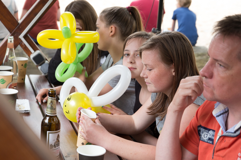 Die feierliche Gürtelübergabe war auch der direkte Startschuss für das Sommerfest. Wie zu erwarten war der Zuckerwatte-Stand die heimliche Attraktion. Doch es gab noch einiges mehr zu erleben an diesen Junitag. Stark nachgefragt war die Ballonkünstlerin, die aus Luftballons die verschiedensten Tiere, Hüte und Schwerter formte und so ein Lächeln ins Gesicht der kleinen Sportlöwen zauberte.