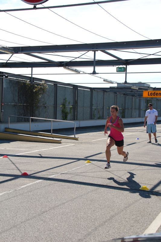Liegestütz und ein kleiner Berglauf (Parkhaus-Auffahrt)
