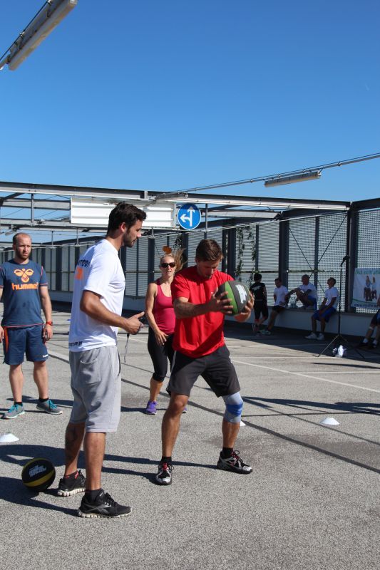Spielfläche 12x26m, mit Weichmatten als Tore