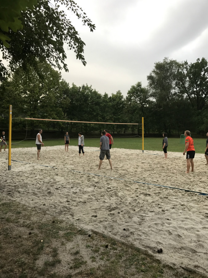 Die Abendgestaltung wurde aufgrund der angenehmen Wärme nach draußen verlegt, das bedeutet Grillen, Beachvolleyball und am Ende wieder Karten spielen.