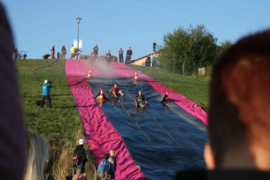 Zu den Höhepunkten des Rennens gehörten ohne Zweifel die Schwimmstrecke durch den Markkleeberger See zu Beginn des Rennens und die große Wasserrutsche kurz vor Ende des Parcours. Zwei deftige Schlammpassagen und diverse Wasserhindernisse forderten im Nachhinein das ganze Können der Waschmaschinen. Das sonnige Spätsommerwetter sorgte für eine entspannte Rennatmosphäre und eine angenehme Veranstaltung mit hoher Zuschauerbeteiligung entlang der gesamten Strecke. Nach einer Stunde und 3 Minuten waren die 8,6 Kilometer geschafft und die vier Sportlöwen gesund und glücklich im Ziel.