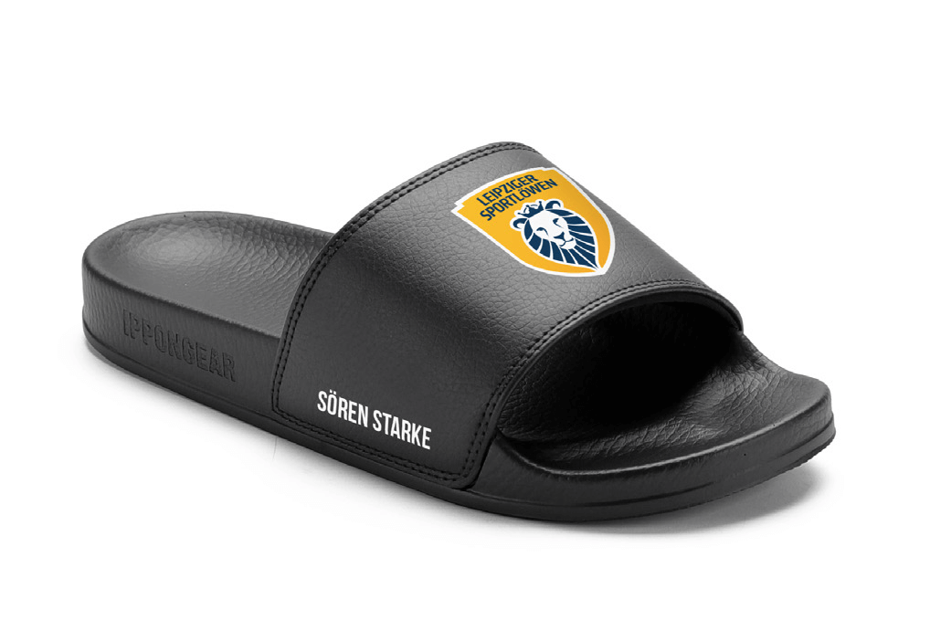 Sportlöwenlogo einfarbig auf dem linken Bein.