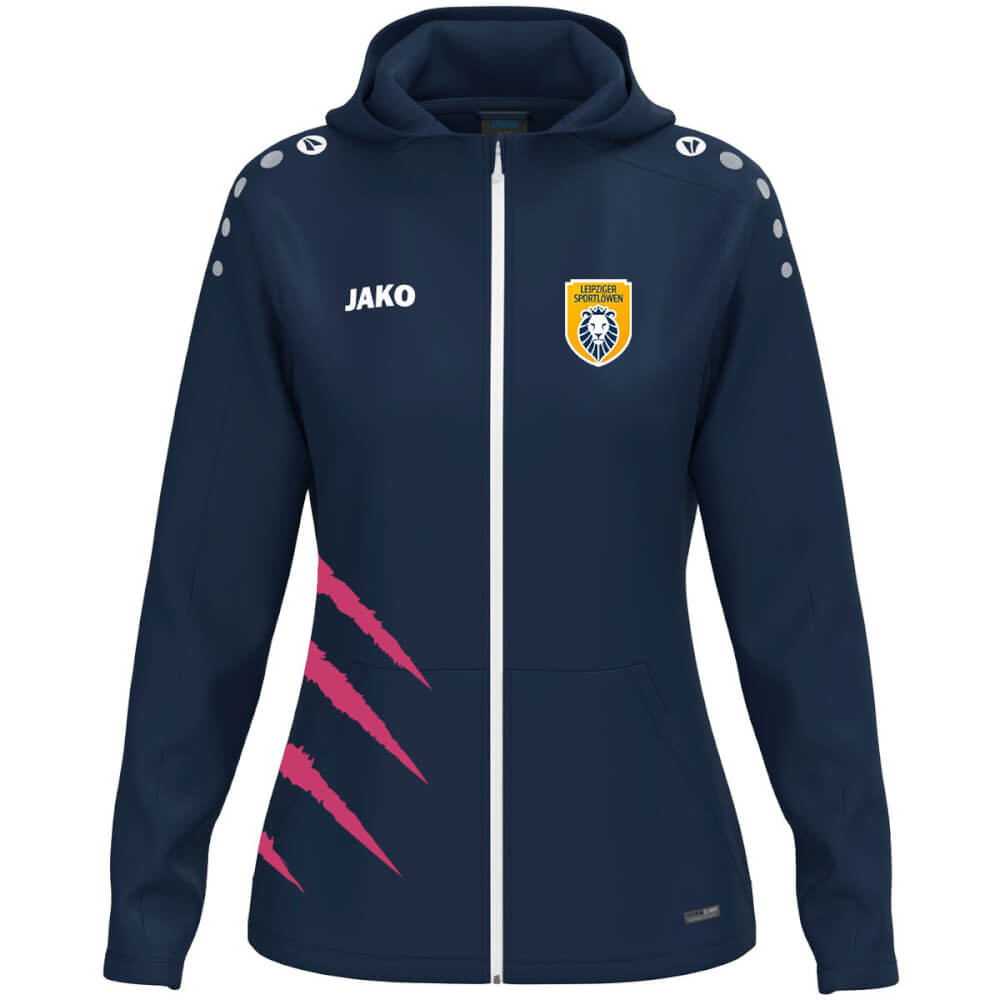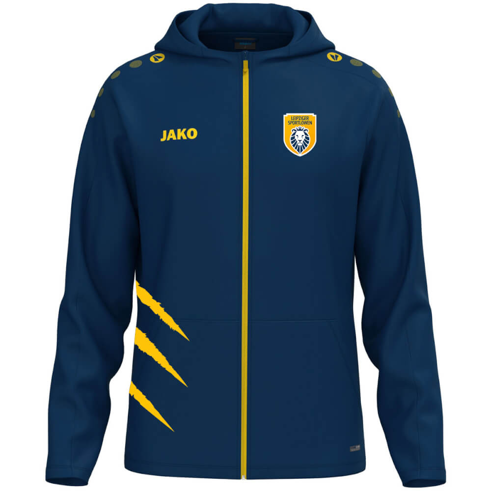 Umsatzsteuerbefreit gemäß UStG §19Lieferzeit: bis zu 30 WerktageKapuzenjacke mit Sportlöwen-Logo auf der Brust, den markanten Löwen-Kratzern auf dem Rippenbogen und dem Judozeichen auf dem Rücken.