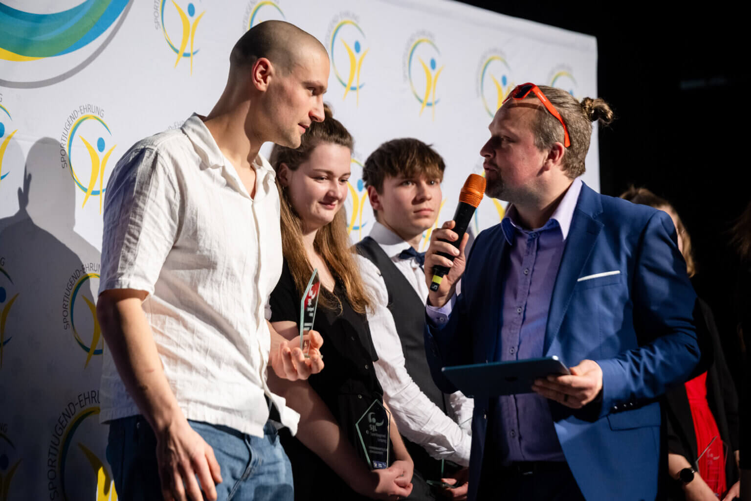 Die Sportjugend Leipzig ist unserer Empfehlung gefolgt und hat Aaron ausgezeichnet. Um ihn wirklich zu überraschen, haben wir bis zum Schluss nichts verraten. Er besuchte die Veranstaltung gemeinsam mit seinem Freund Tobias – in der festen Annahme, Tobias sei derjenige, der geehrt wird.