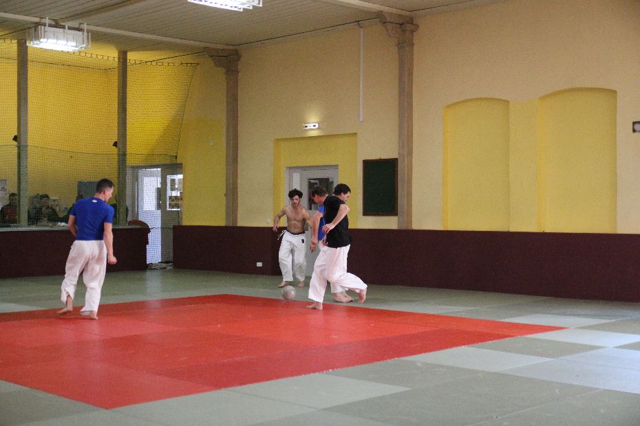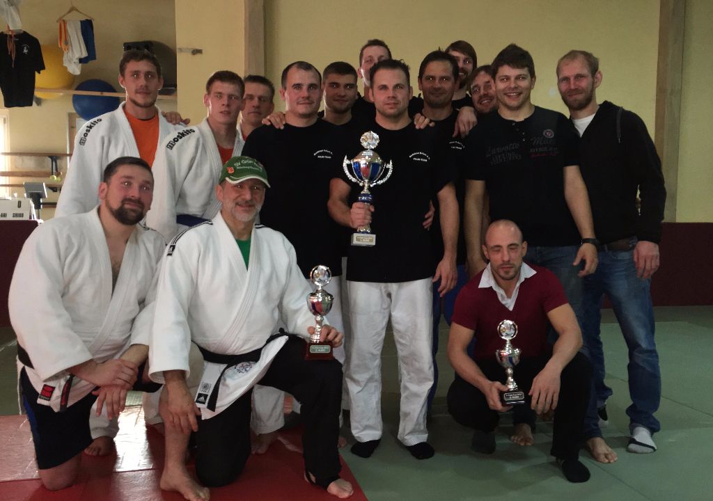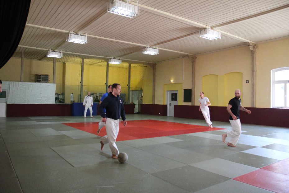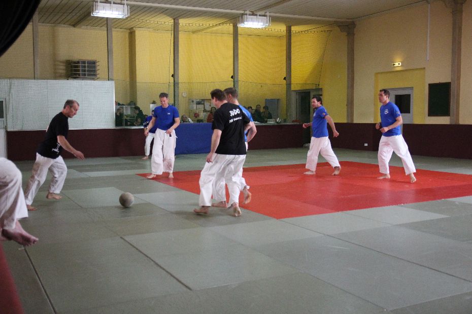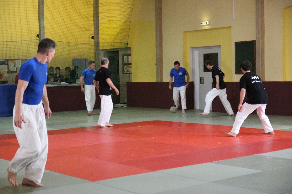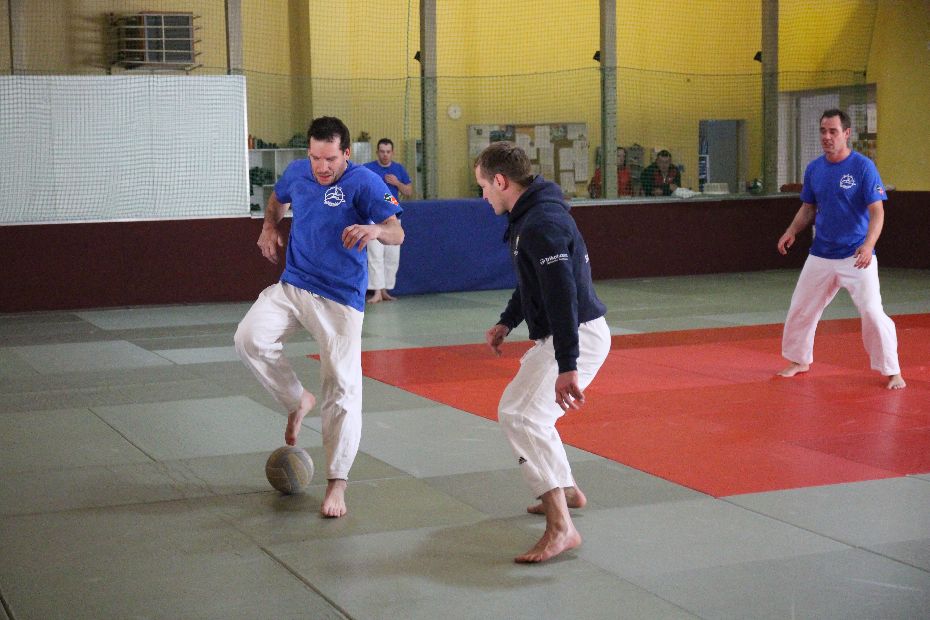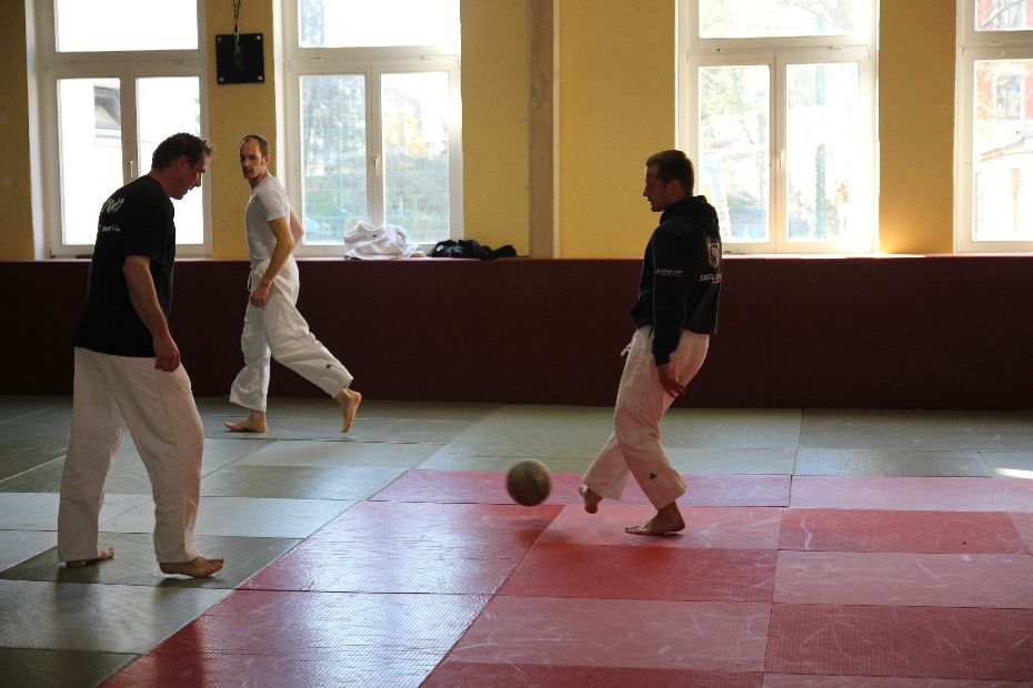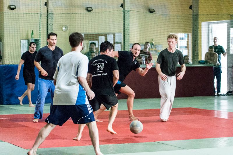 Nach der Mittagspause wurde der Sieger im Fußball gesucht. Gespielt wurde 2x 6 Minuten. Die Vorjahressieger Grün Weiß Dresden konnten sich in dieser Disziplin mit 4:1 Siegen durchsetzen. In der Gesamtwertung wurde es dann noch einmal richtig spannend. Gegen das Thüringer Judo-Team schafften die Dresdner nur ein Unentschieden. Damit fehlte in der Endabrechnung der entscheidende Punkt zur Titelverteidigung. Die Leipziger setzten sich letztendlich mit einem Punkt Vorsprung (12:4) gegen die Dresdner (11:5) durch. Über Bronze freute sich das Team aus Döbeln.