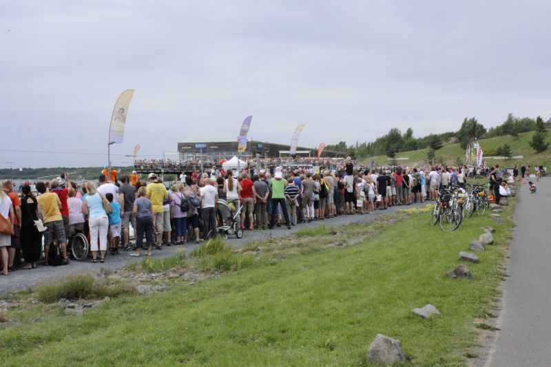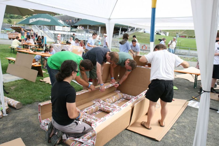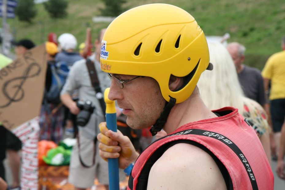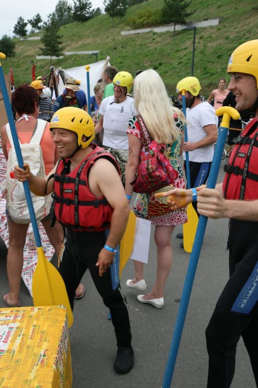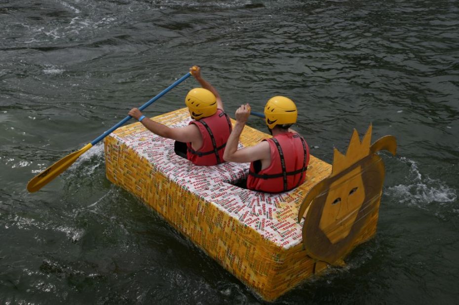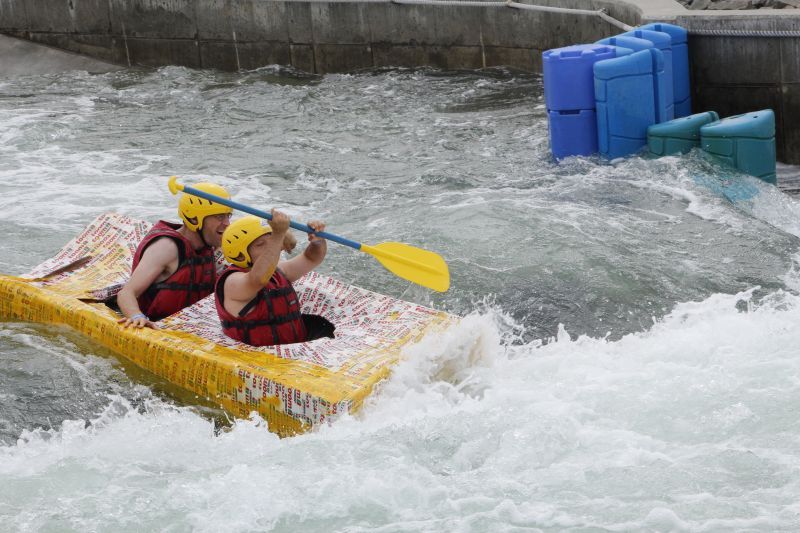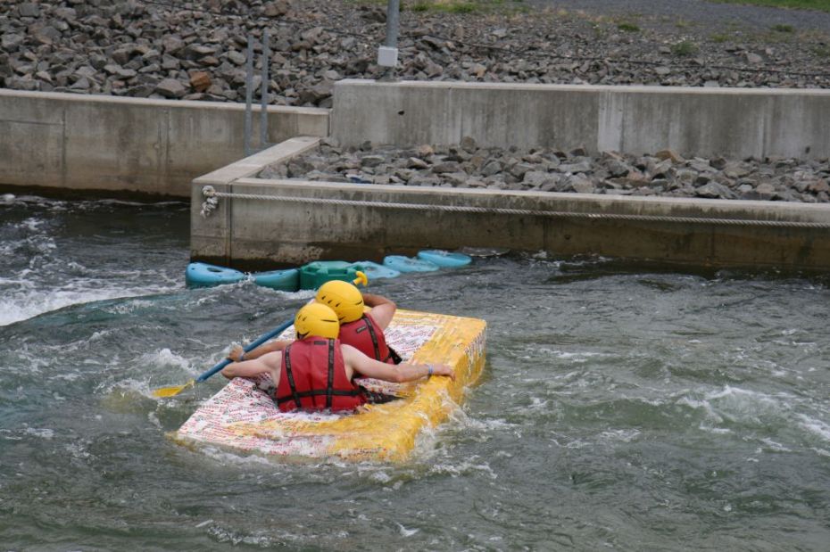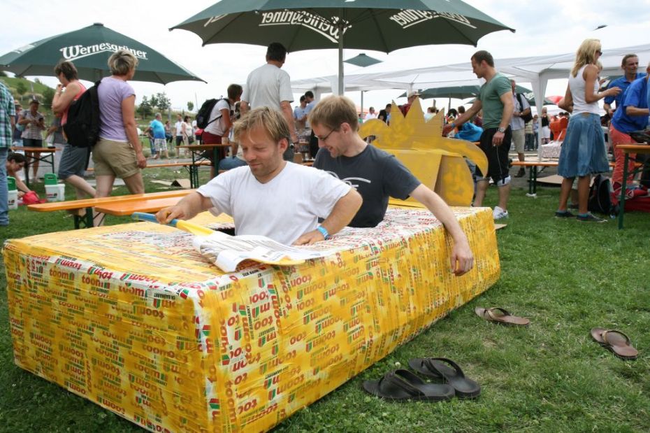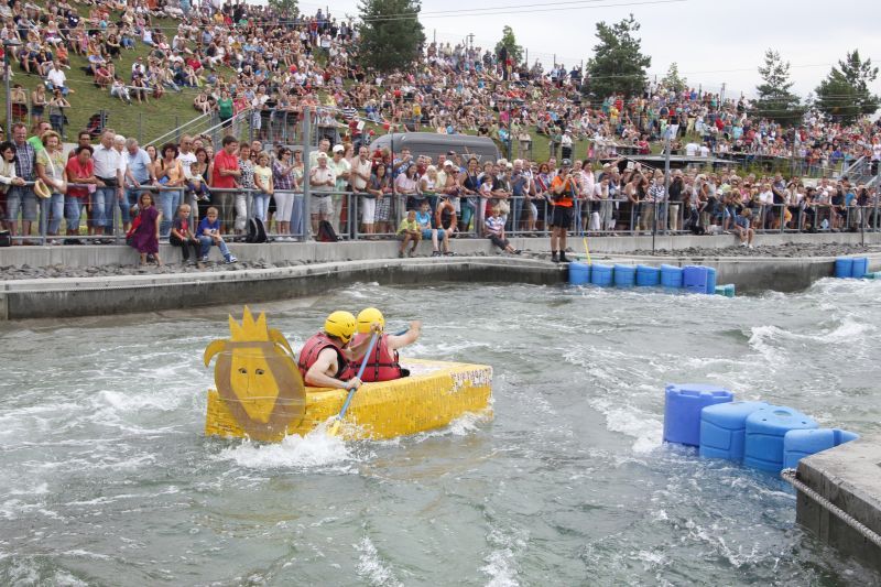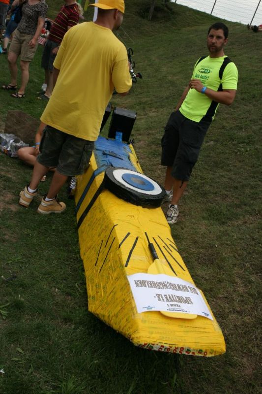 Ein Sieg sprang beim 7. Pappbootrennen leider nicht heraus. Doch das war beim sehr gut besuchten Spaß-Rennen auch zweitrangig. Vor mehr als 7.000 Zuschauern glitt der Löwenkutter majestätisch und sicher den Wildwasserkanal am Markleeberger See herunter. Kapitän Thomas Necke konnte beim Bau des stolzen Dampfers (für die Bezeichnung Rennboot war die Zeit dann doch zu schlecht) auf eine erfahrene Leichtmatrosen-Crew zurückgreifen: Trainer André Korb, Johannes Wiegand, Marko Reitmann und André Barthel konzipierten und formten aus Pappe und Klebeband den schnittigen gelben Zweisitzer. Thomas übernahm das Steuer und der nautische Wachoffizier Johannes sorgte für den Vortrieb. Dieser bestand nach einem Viertel der Strecke aus energischen Arm- und Handbewegungen, da Matrose Johannes sein Paddel verloren hatte (siehe Video). Der Wille war da …