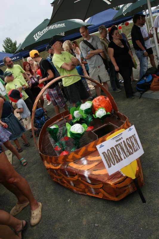 Am Ende belegte das Boot der Sportlöwen den fünften Platz, nur eine Minute langsamer als die „Pappnasen“ (Siegerboot aus Taucha) . Ein sehr gute Platzierung bei 15 Startern. Viele davon kamen erst gar nicht ins Ziel, sie kenterten vorzeitig.